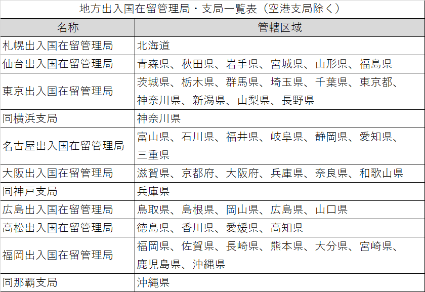 出入国在留管理局の種類